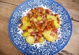 Hoe Aardappelpannetje met cantharellen en spekjes te bereiden