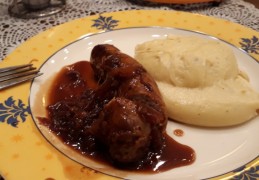 Gegeten met een verse worst en rode uiensaus