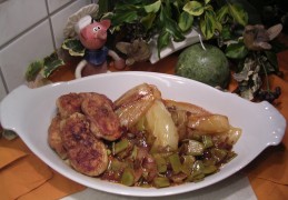 Bak het witloof aan in boter voeg de ajuin en sluimererwten toe goed kruiden met peper en bruschetta kruiden.Als laatste de rode wijn toevoegen .