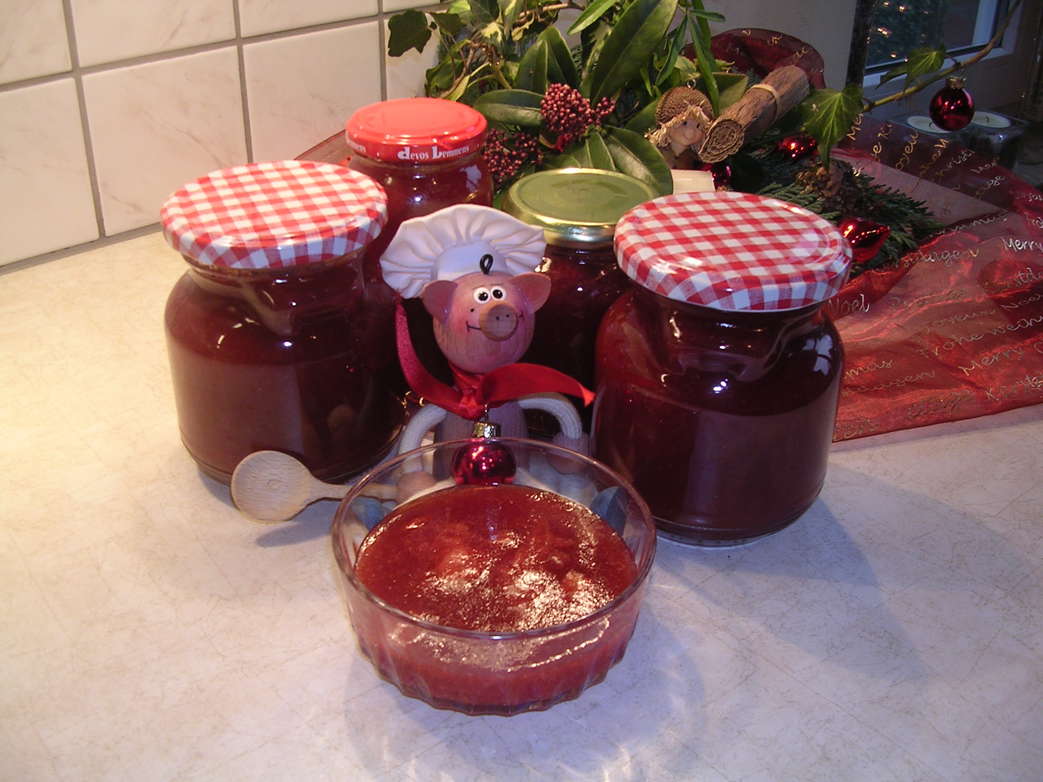 Doe alles in een grote ketel en voeg de suiker toe.Alles aan de kook brengen en laten koken ...regelmatig afschuimen .Als de gewenste dikte bereikt is de confituur in potten verdelen en deksel erop.