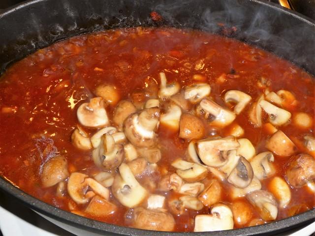 - Snij de paddenstoelen in vieren en bak ze in een klontje boter (in een andere pan).