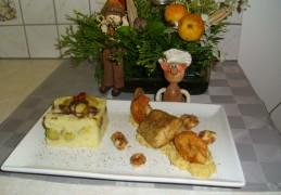 Neem een uitsteekvorm, insmeren met boter en vul deze met aardappelpuree, groenten en opnieuw puree eindig met groenten. Zet deze even onder de grill om warm te houden.