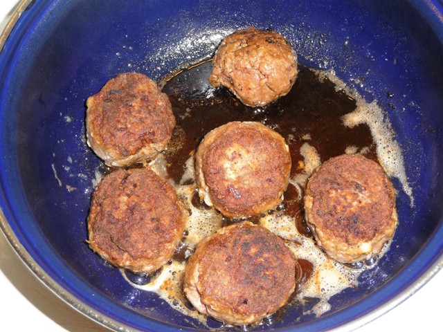 - Verwarm braadboter in een pan en bak de ballen rondom bruin.