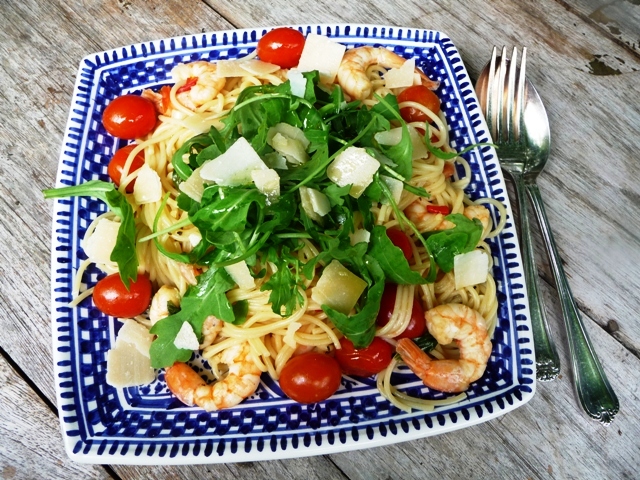 Een heerlijk en simpel pasta gerecht voor liefhebbers van grote garnalen.