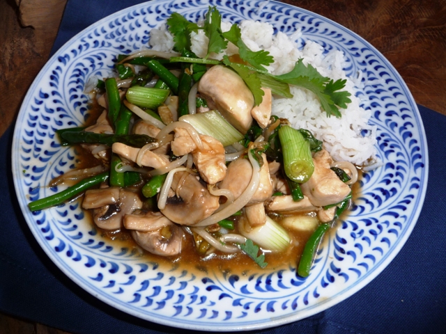 Een Thais gerecht is niet altijd per definitie heet of peperig. Dit gerecht is daar een goed voorbeeld van. Heerlijk mild maar wel erg smaakvol en een aanrader voor mensen die van de Aziatische keuken houden. De taugé doet misschien een beetje Chinees aan, maar vergeet niet dat er in de Thaise keuken ook veel Chinese invloeden terug te vinden zijn, zeker in het Noorden van Thailand.