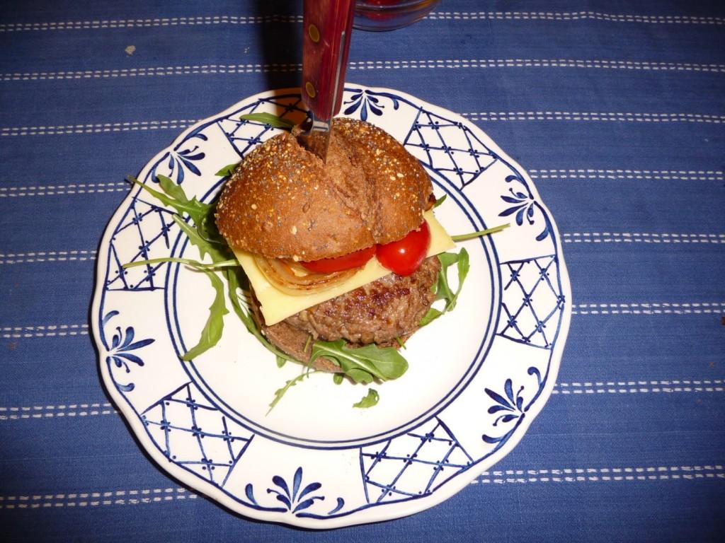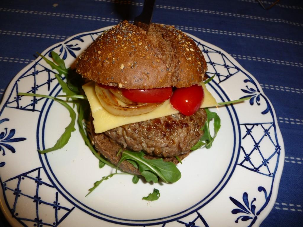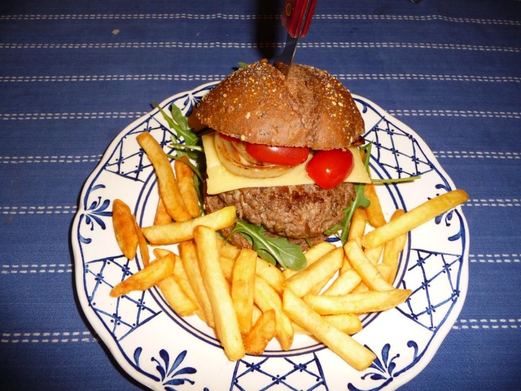 - Serveer de burger op een broodje met gebakken ui en sla en natuurlijk met frietjes, of lekker naturel met gebakken aardappels en groenten.