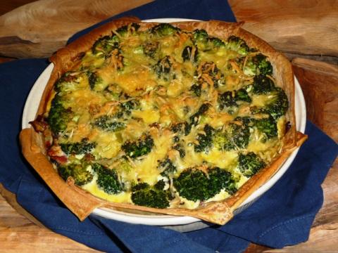 Hartige taart met broccoli, champignons en spekjes