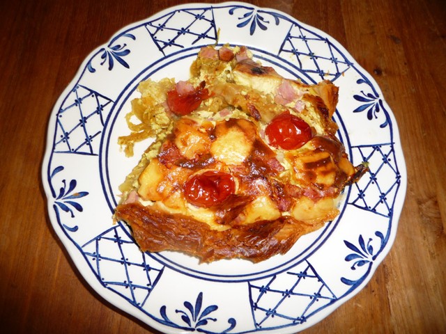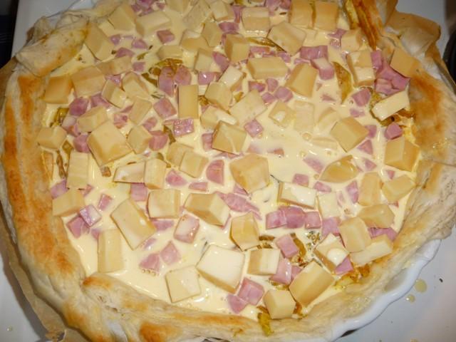 Hoe Hartige taart met Chinese kool, ham en kaas te bereiden