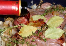 - Voeg de hertensukade toe samen met de wijn. Voeg ook de rozemarijn, tijm, laurierblaadjes en kruidnagels toe. Laat dit geheel zo'n 1.5 uur à twee uur zachtjes sudderen met een deksel op de pan.