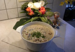 Neem een grote ketel vul met de melk en warm deze op, kruiden naar smaak met gember, cajun, currykruiden en een beetje peterselie (hou een beetje aan de kant voor afgarnering).