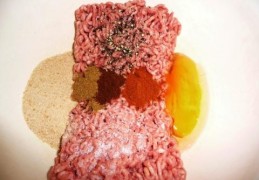 - Doe het gehakt,ei, komijn, paprikapoeder, kruidnagelpoeder, paneermeel en zout en peper in een ruime kom en kneed ze tot een goed gemengd geheel.