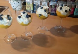 Een lekker fris nagerecht bestaande uit laagjes met cantucini, limoncello, mascarpone, lemon-curd en gepureerde mango.