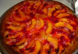 Zomer, volop rijpe nectarines, dus weer eens een lekker snel taartje gebakken. Het taartje wordt gebakken van boterkoekdeeg in een boterkoekvorm.