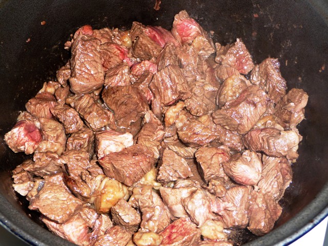 rundvlees lekker sudderen totdat het bijna zijdezacht wordt. Door het