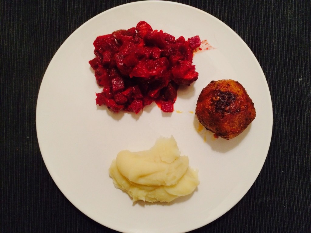 Lekker recept om eens te variëren met bieten. Zelf heb ik het gegeten met aardappelpuree en een gehaktbal van Stroganoff-gehakt zoals op de foto te zien is. Als dessert had ik heerlijke stoofpeertjes dus een lekkere Hollandse maaltijd. Ook deze bieten waren weer vers van het land.
