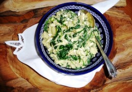 Hoe Romig spinaziestamppotje met ei en pesto te bereiden