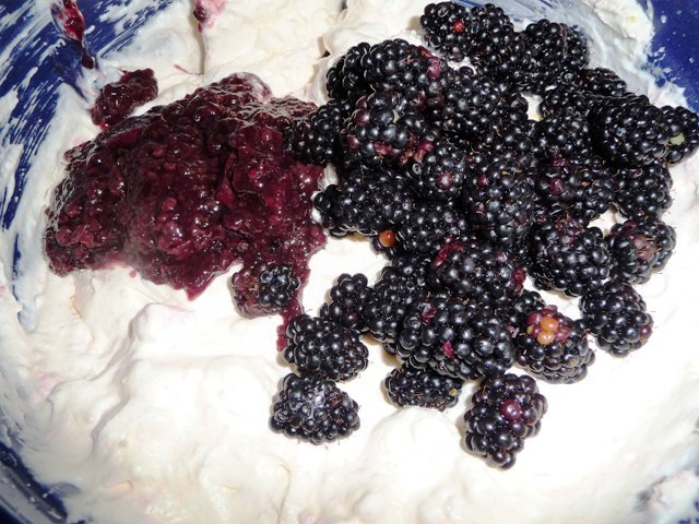 wat je er aan toevoegt. Ik heb deze keer bramenjam en verse bramen