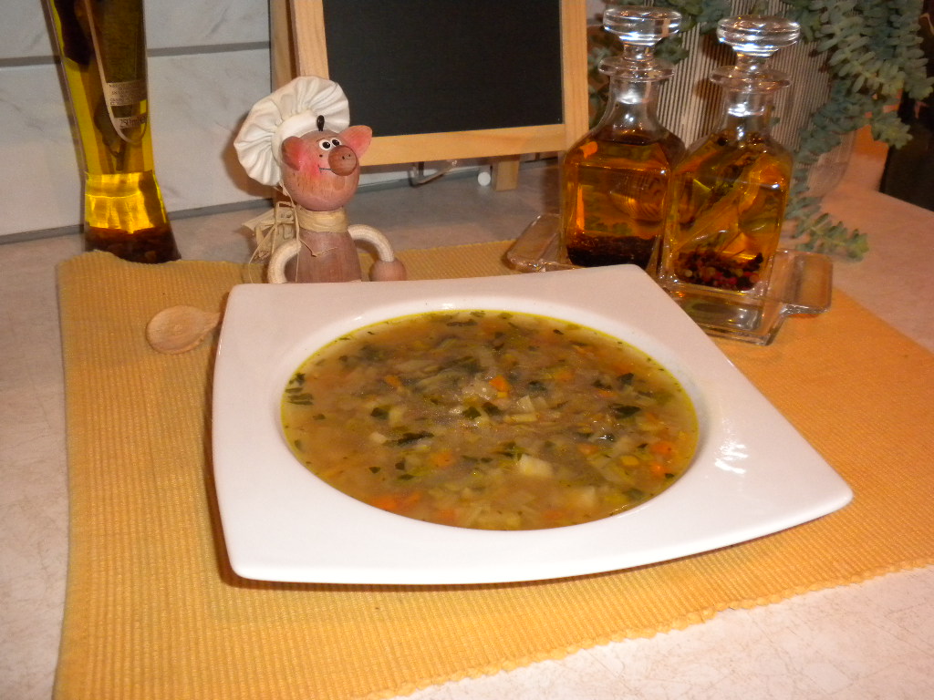 Stoof alle groenten in een beetje boter, vervolgens de bouillon toevoegen, laat op een zacht vuur pruttelen.