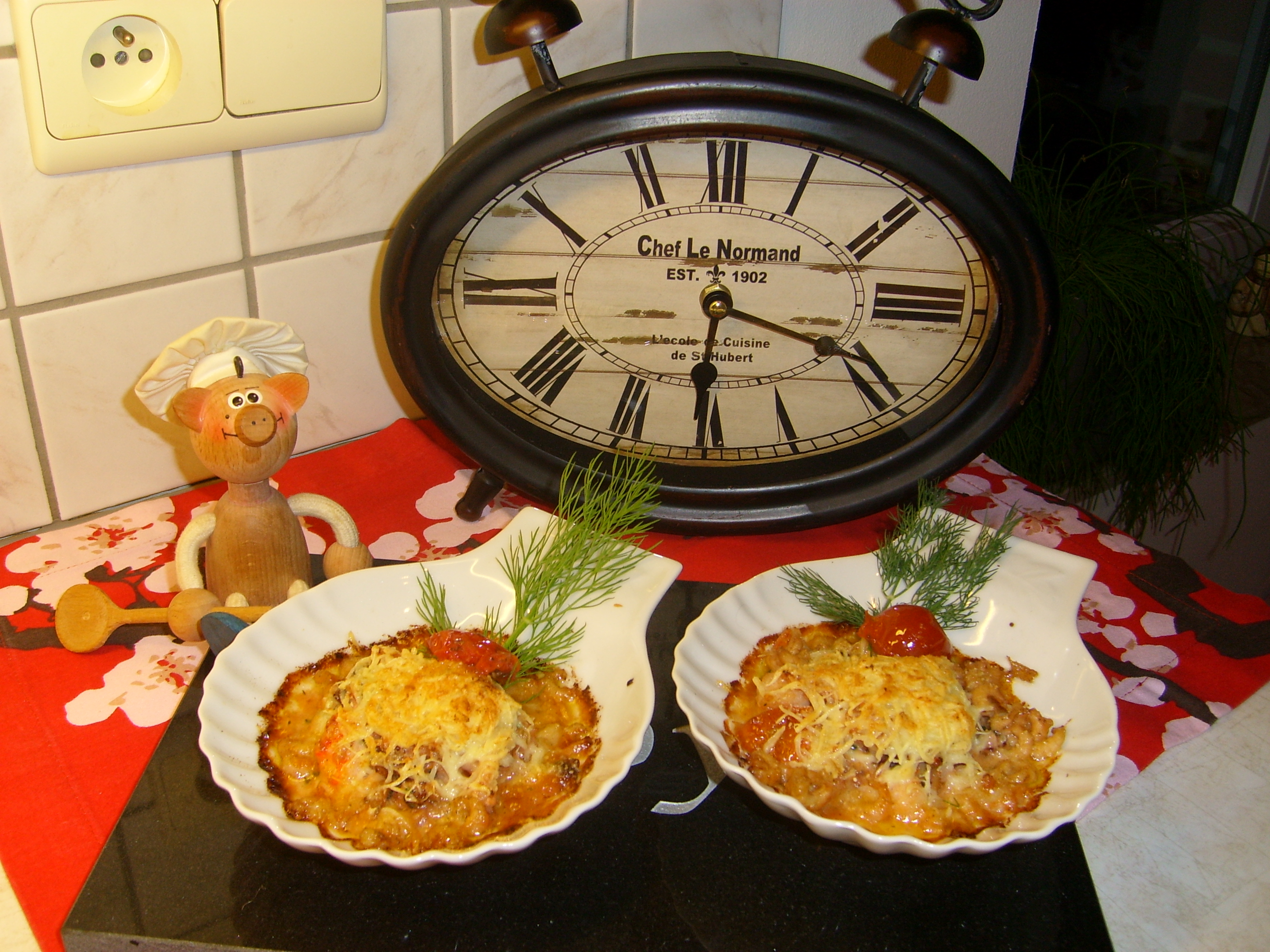 Stoof de look en sjalotje even aan en voeg kruiden en passoa toe. Neem van het vuur en laat even afkoelen, voeg de vis en tomaatjes toe. Serveer in schaaltje en bestrooi rijkelijk met gemalen kaas.